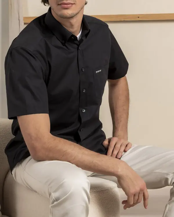 Cette chemise à manches courtes en popeline de coton unie est l'essence même de l'élégance estivale. Sa coupe regular flatte la silhouette tandis que ses finitions travaillées soulignent le charme de cette chemise d'été. Un petit col boutonné, une poche poitrine rebrodée de notre logo "3 petites vaches" contrastés et des coutures soignées ajoutent à l'élégance de ce modèle proposé en blanc lumineux ou dans un noir profond. Cette chemise en coton noire sera idéale pour habiller vos plus belles soirées d'été.
