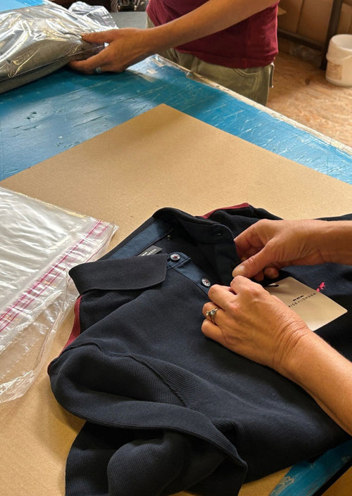 - Tri par référence, couleur et taille avant retour vers notre dépôt principal pour une nouvelle distribution.