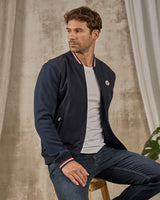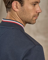 Avec ce blouson pour homme à manches longues, traversez la mi-saison avec chic et décontraction. Grâce à ses poches latérales zippées, son col teddy et son coloris bleu marine, ce modèle exclusif s’adapte à tous les styles. Très agréable à porter, il vous suivra partout durant vos journées ! Des détails contrastés tricolores rehaussent l’ensemble. Associez-le sans modération avec vos tenues favorites pour une allure toujours soignée.