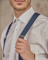 Des tenues distinguées avec ces bretelles bleu marine à pois ! Cet accessoire garantit que votre pantalon reste bien en place et confère une esthétique plus habillée à votre style. Parfait pour compléter vos looks quotidiens, elles s’attachent aux pantalons grâce à des clips. L’occasion de vous démarquer avec une allure unique !