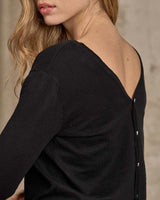Le gilet en maille est une pièce de choix de la garde-robe féminine ! Plein de douceur, notre modèle est composé en coton avec une touche de cachemire. Grâce à sa fermeture boutonnée, vous pouvez le porter de deux façons : en gilet avec l’ouverture sur le devant, ou en pull avec l’ouverture au dos. Ce modèle d’exception mêle polyvalence et élégance pour vous permettre de changer de style au gré de vos envies ! Un col en V, une teinte noire profonde et des boutons aux poignets complètent son allure intemporelle.