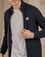 Pour une allure dynamique, ce cardigan pour homme est revisité avec une fermeture éclair à rayures contrastées. Avec son design moderne et raffiné, il s’impose comme une pièce de choix du vestiaire masculin ! Confortable, il est conçu entièrement en coton. Une coupe droite, un badge tricolore et un col camionneur apportent la touche finale. Une pièce mode à ne surtout pas manquer !