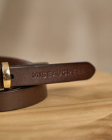 Chic et intemporelle, cette ceinture fine marron est l’accessoire incontournable de votre garde-robe ! Véritable bijou, elle est sublimée par une boucle dorée et une inscription Mise au Green. Confectionné en cuir, ce modèle polyvalent se porte aussi bien avec un jean qu’une robe pour souligner votre taille. Misez sur son design élégant et épuré pour compléter toutes vos tenues.