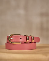 Chic et intemporelle, cette ceinture fine rose est l’accessoire incontournable de votre garde-robe ! Véritable bijou, elle est sublimée par une boucle dorée et une inscription Mise au Green. Confectionné en cuir, ce modèle polyvalent se porte aussi bien avec un jean qu’une robe pour souligner votre taille. Misez sur son design élégant et épuré pour compléter toutes vos tenues.