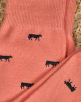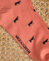 Des petites vaches s’invitent sur vos pieds avec ces chaussettes pour homme ! En plus d’apporter une touche de fantaisie à votre tenue, elles sont aussi très confortables. Leur tissu élastique et doux – mélange de coton issu de l'agriculture biologique, polyamide et élasthanne – ainsi que ses bords-côtes larges permettent un maintien confortable sur la jambe. Fini les chaussettes trop sobres : osez son coloris corail ! Petite anecdote : la vache est l’animal emblématique de notre marque Mise au Green en hommage au grand-père de nos fondateurs qui fut marchand de bestiaux. Il n'a donc pas été choisi au hasard sur cet accessoire original !