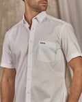 Élégante, facile à porter, confortable : cette chemise à manches courtes multiplie les atouts. Sa teinte bleu ciel unie est mise en valeur par un tissu lumineux et doux 100 % coton. Parfaite pour toutes les silhouettes, elle affiche une coupe droite, une poche poitrine et un col à pointes boutonnées. Cet essentiel du vestiaire est signé d’une broderie Mise au Green et se mixe à merveille avec un pantalon ou un chino pour des looks impeccables.