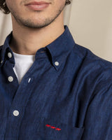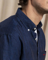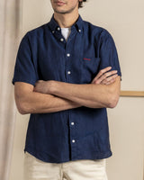 Cette chemise manches courtes 100% lin est un must-have de notre collection printemps-été. Réalisée dans une fibre naturelle légère et respirante dans une coupe regular fit, elle sera votre meilleure alliée pour une tenue tendance et confortable en plein été. Son allure minimaliste est mise en valeur par ses finitions soignées comme sa discrète poche poitrine rebrodée du logo de notre marque française. Dotée d'un petit col boutonné et d'une patte de boutonnage classique cette chemise bleu marine à manches courtes se porte aussi bien à même la peau que ouverte sur un t-shirt en coton. Aussi à l'aise avec un chino qu'un short d'été, cette chemise bleu marine se décline dans toute une palette de coloris intemporels ou pastel.
