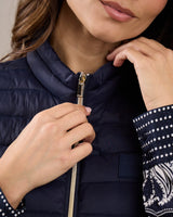 Réalisée en nylon, cette doudoune sans manches résiste aux intempéries ! Avec son coloris uni bleu marine et son effet matelassé, elle vous aide à adopter une allure décontractée et sophistiquée. Le détail qui fait la différence ? Sa fermeture éclair dorée. Deux poches latérales et un badge signature complètent cette pièce épurée et polyvalente. Pour ajouter du volume à votre tenue, portez-la par-dessus votre pull ou votre tee-shirt à manches longues favori.