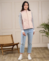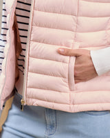 Réalisée en nylon, cette doudoune sans manches résiste aux intempéries ! Avec son coloris uni rose pâle et son effet matelassé, elle vous aide à adopter une allure décontractée et sophistiquée. Le détail qui fait la différence ? Sa fermeture éclair dorée. Deux poches latérales et un badge signature complètent cette pièce épurée et polyvalente. Pour ajouter du volume à votre tenue, portez-la par-dessus votre pull ou votre tee-shirt à manches longues favori.