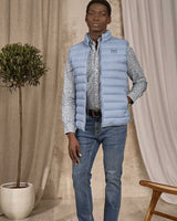 Confortable à souhait, cette doudoune sans manches pour homme est fabriquée en nylon et polyester recyclé. Idéale pour la saison, elle vous gardera au chaud tout en vous laissant une grande liberté de mouvement. Pour un style infaillible, osez son coloris bleu ciel tendance ! Aussi belle que fonctionnelle, elle possède un col montant, une fermeture zippée et deux poches latérales. À porter sans modération au travail ou lors d'une sortie !