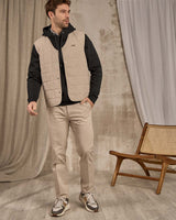Cette doudoune sans manches vous accompagne toute la saison pour des looks confortables. Son design original se démarque par sa large encolure en V et son matelassage en carreaux. Cette pièce se ferme avec des boutons et possède des poches intérieures pratiques. Légère et facile à vivre grâce à son coloris camel, elle se superposera facilement à toutes vos pièces préférées ! Un patch Mise au Green est également cousu sur la poitrine.