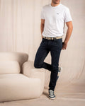 Au quotidien, ce jean bleu médium sera votre meilleur allié ! Son design résolument moderne est sublimé par un léger délavage, cinq poches et une coupe ajustée qui flatte la silhouette en toute simplicité. Pour plus de souplesse et de confort, il est confectionné dans un mélange de coton et élasthanne. Un logo brodé 3 vaches au niveau des poches ainsi qu’un jacron Mise au Green signent cette pièce intemporelle. Associez-la avec n’importe quel haut de votre vestiaire pour une allure dans l’air du temps.