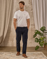 Un pantalon chino en velours auquel il est difficile de résister ! Avec sa coupe flatteuse, il s’adapte à toutes les situations et séduit pour son charme intemporel. Craquez pour son coloris bleu marine, un choix sûr qui se mariera facilement avec le reste de votre vestiaire. Fabriqué dans un tissu doux et confortable, il convient parfaitement à une utilisation quotidienne. Des poches, des passants de ceinture et une taille élastiquée soulignent l’ensemble. Portez-le sans modération pour une allure à la fois chic et décontractée !