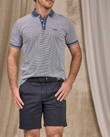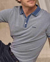 Maîtrisez l'art du style au quotidien avec ce polo rayé à manches courtes ! Proposé dans une teinte bleu marine et un tissu jacquard doux, il rehausse n’importe quelle tenue décontractée et fait son petit effet. Misez sur sa matière en coton issu de l’agriculture biologique pour des tenues confortables et dans l’air du temps. La touche finale : sa patte de boutonnage à 3 boutons et sa broderie 3 vaches sur la poitrine.