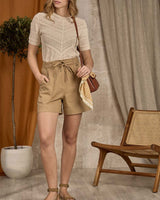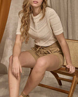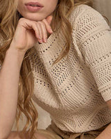 La maille ajourée de ce pull à manches courtes pour femme révèle toute votre féminité ! Muni d’un col rond, d’un coloris écru uni et de bords côtelés, ce modèle garantit des tenues chics sans en faire trop. Il accompagne aussi bien un jean qu’un short et fait sensation à chaque sortie. Son plus ? Sa matière légère et confortable en viscose et en coton issu de l’agriculture biologique.