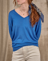 Injectez du style à votre tenue avec ce pull pour femme à col V ! On adore son coloris uni bleu royal et ses élégants détails ajourés le long des manches. Des bords côtelés au col, aux poignets et à la base finalisent cette pièce de tous les jours. Pour des journées confortables, elle est fabriquée dans un mélange de viscose Ecovero, de polyamide et de polyester, le tout avec une pointe de cachemire et de laine. Vous n’allez plus vous en passer !