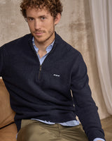 Ce pull à col zippé est un incontournable du vestiaire masculin ! Mélange de laine et de polyamide, il offre confort et chaleur en toutes circonstances. Des finitions côtelées au niveau des poignets, de la basse et du col complètent ce modèle tendance. Décliné dans un coloris bleu marine, il dynamise votre allure et se porte facilement en superposition pour mettre en valeur votre tee-shirt ou votre chemise. Pour des looks décontractés, laissez-vous séduire par ce basique !