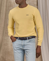 Pour des looks chics et faciles à vivre, découvrez ce pull uni à manches longues ! Réalisé intégralement en coton biologique, il garantit un porter à la fois confortable et luxueux. Avec son design soigné et sa coupe droite, ce modèle mettra en valeur n’importe quelle silhouette masculine. Un col rond, des bords côtelés et une broderie Mise au Green complètent cet essentiel. Décliné dans une teinte jaune, il se porte aussi bien en mode formel que décontracté au quotidien.