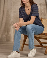 T-shirt col V rayé