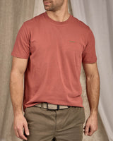 Soyez à l’aise toute la journée avec ce tee-shirt pour homme à manches courtes. Avec son coloris bois de rose uni, son col rond et sa coupe droite, ce modèle convient à tous les styles et morphologies. Confectionné intégralement en coton issu de l’agriculture biologique, il garantit douceur et respirabilité. Le détail qui change tout ? Sa petite broderie « 3 vaches » contrastée. Cet essentiel facile à vivre se porte seul ou sous un gilet de notre collection pour un style dans l’air du temps !