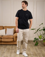 Soyez à l’aise toute la journée avec ce tee-shirt pour homme à manches courtes. Avec son coloris noir uni, son col rond et sa coupe droite, ce modèle convient à tous les styles et morphologies. Confectionné intégralement en coton issu de l’agriculture biologique, il garantit douceur et respirabilité. Le détail qui change tout ? Sa petite broderie « 3 vaches » contrastée. Cet essentiel facile à vivre se porte seul ou sous un gilet de notre collection pour un style dans l’air du temps !